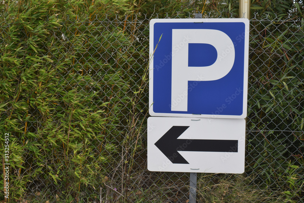 Panneau parking avec flèche directionnelle