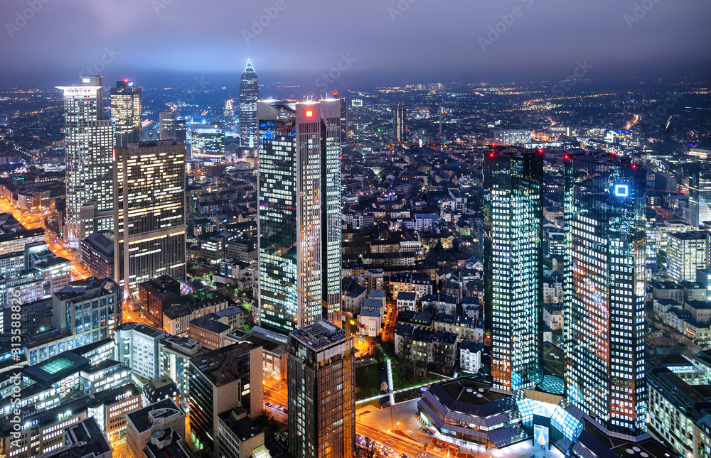 Skyscrapers in Frankfurt on Main, Germany, at night