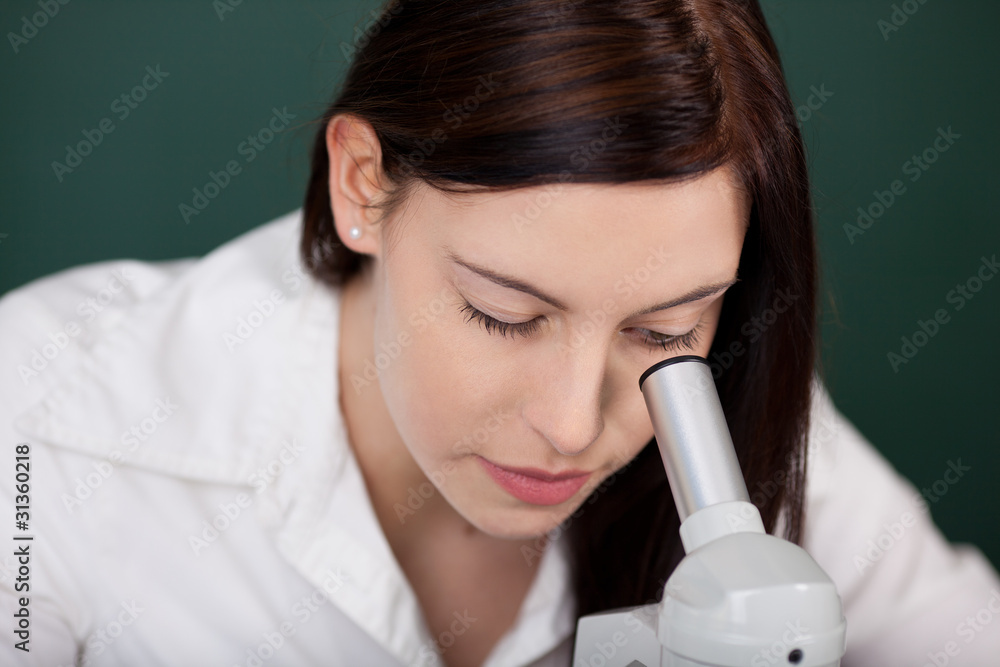 junge frau am mikroskop