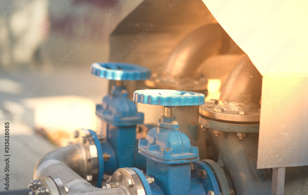 Double tap valve of industrial pipe for material supply in production line part of machine in factory