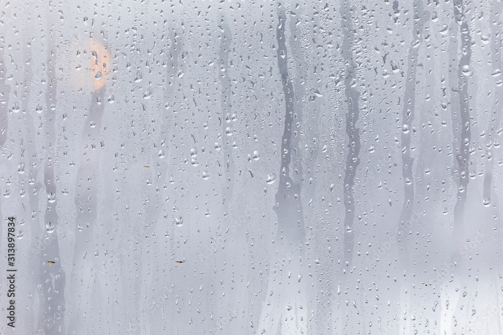 The texture of fogged glass in a warm room