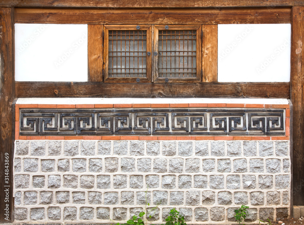 Traditional Korean style Wooden window and wall at Bukchon hanok Village in Seoul, South Korea.