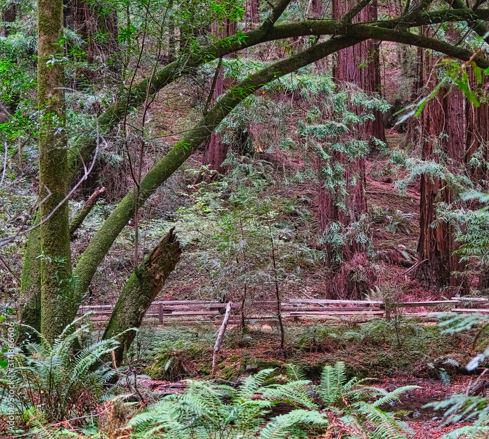Split Rail Fence Through Redwood Forest in Muir Woods