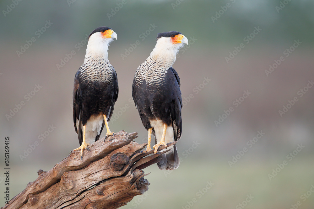 Two Northern Crested Caracara (Caracara cheriway) perched, Texas, USA