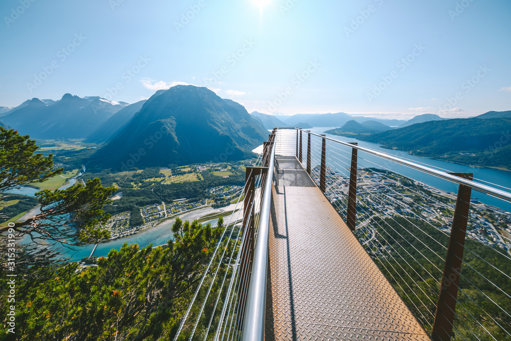 Romsdalstrappa walkway overlooking Andalsnes, Norway