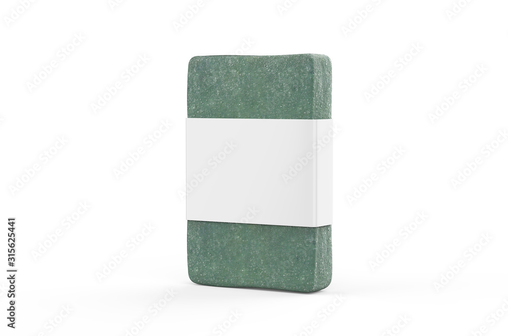 Organic handmade soap bar with paper label, mock up template on isolated white background, 3d illustration