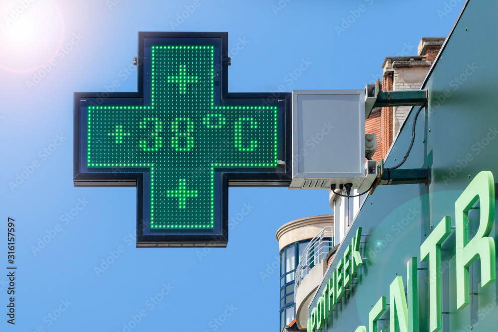 Thermometer showing temperature of 38 degrees Celsius during heatwave