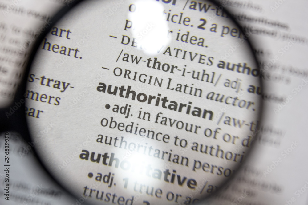 The word of phrase - authoritarian - in a dictionary.