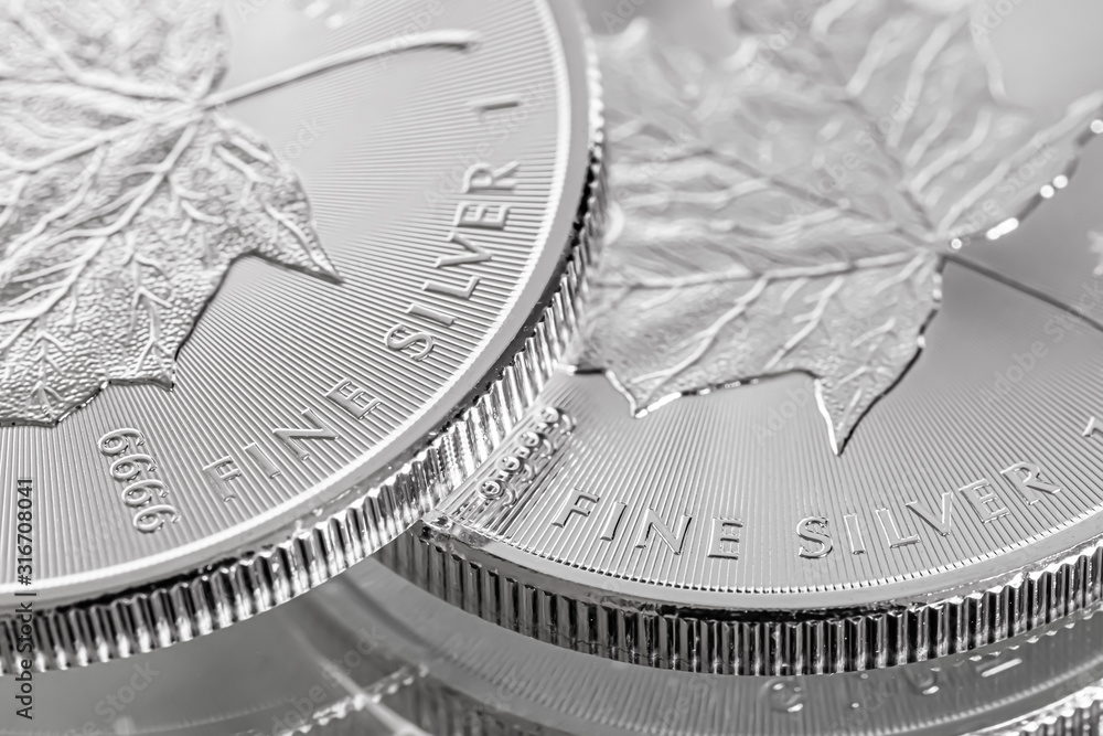 Macro Close up of a 9999 Silver Canadian Maple Leaf Bullion Coin