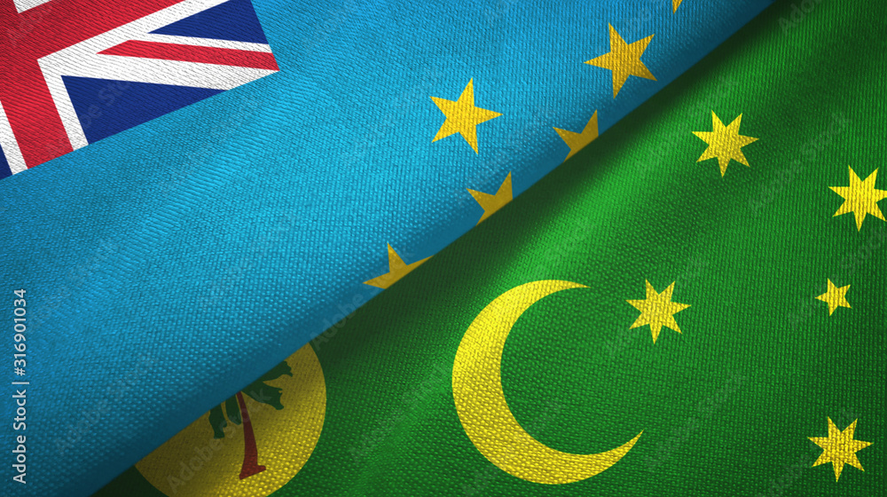 Tuvalu and Cocos Keeling Islands two flags textile cloth, fabric texture