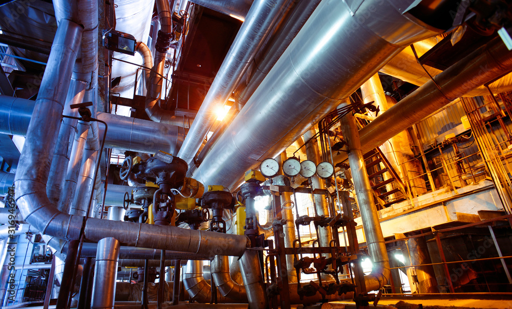 Industrial zone, Steel pipelines, valves and pumps