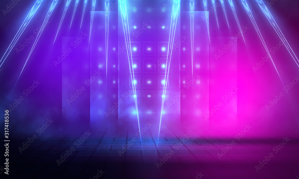 Ultraviolet abstract light. Diode tape, light line. Violet and pink gradient. Modern background, neon light. Empty stage, spotlights, neon. Abstract light.