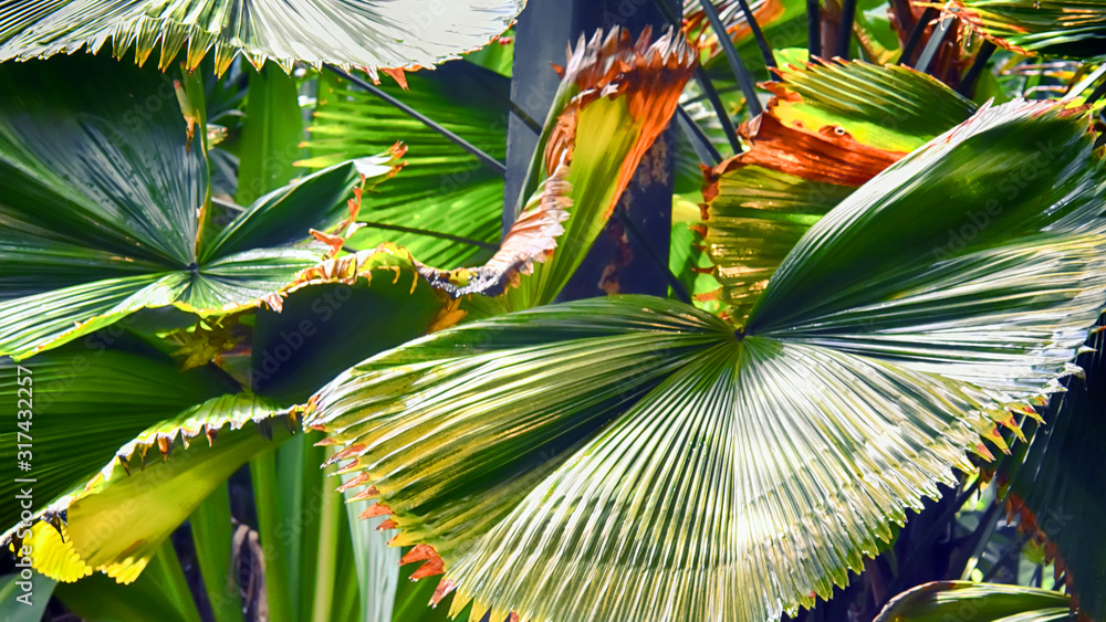 palm plants thickets with large green leaves, rainforest