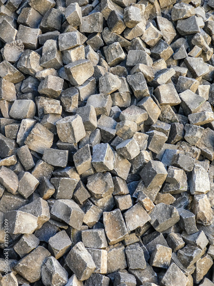 Large pile of gray paving stones, background texture structure