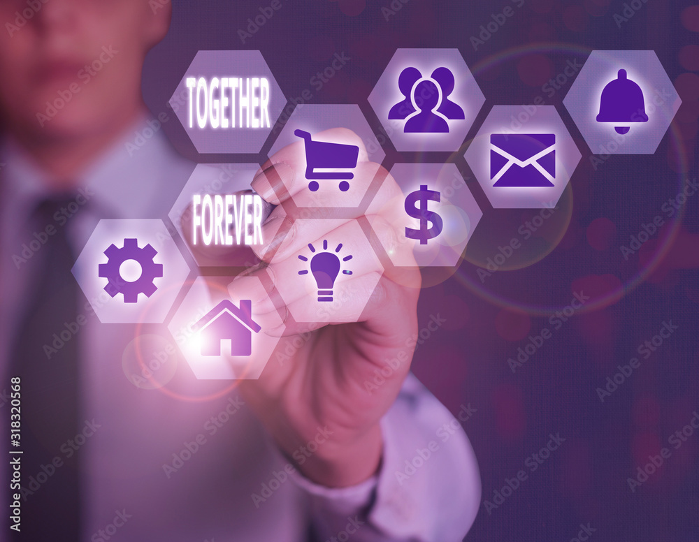 Conceptual hand writing showing Together Forever. Concept meaning showing who promise to love one another for eternity
