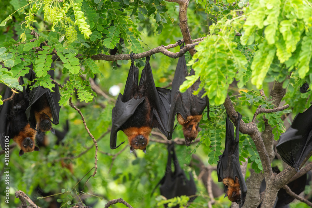 Bats hanging on a tree branch ,bats are among the carriers of the coronavirus epidemic ravaging China