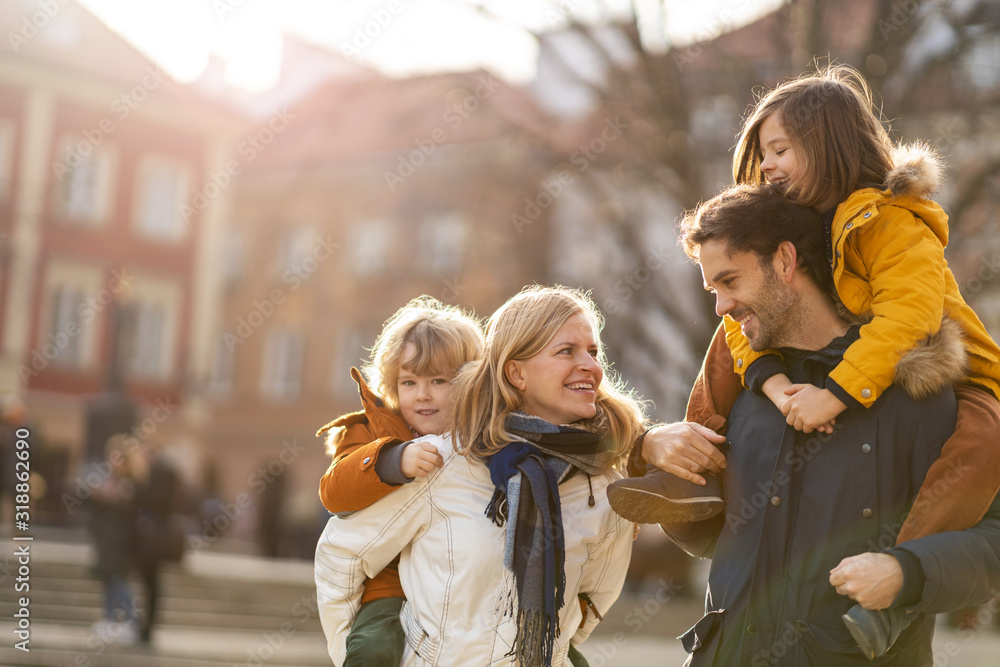 Affectionate young family enjoying their day in a city
