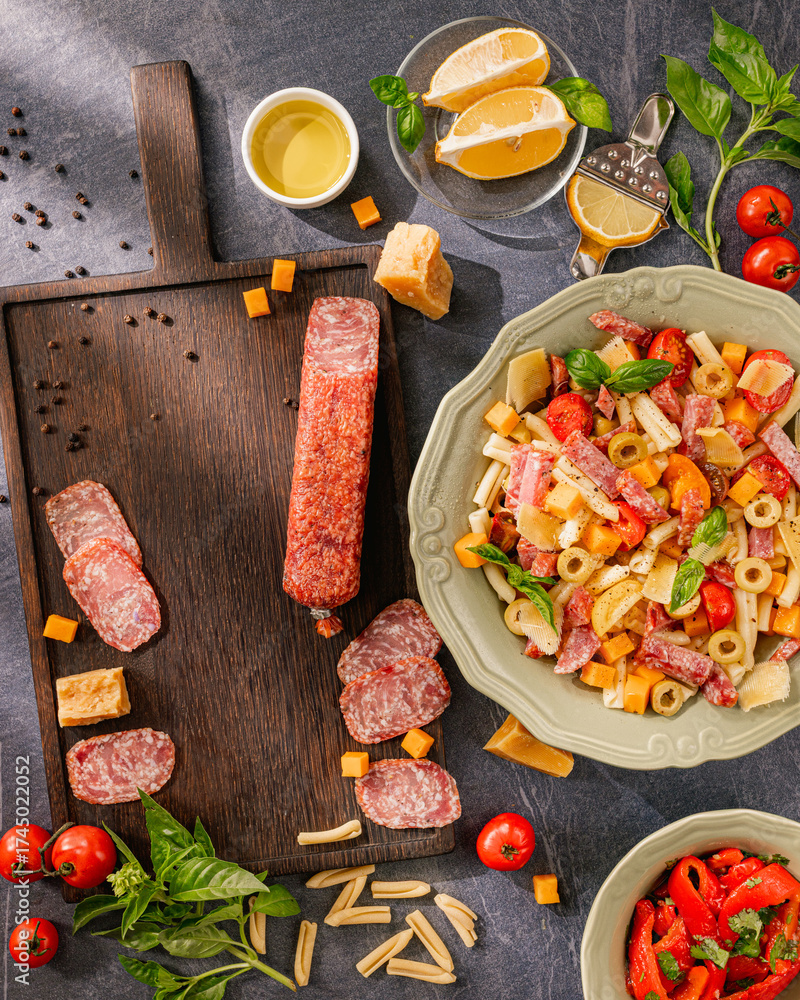 Decorative cosmetics, nail polish. Set of different varnishes for manicure nails on light background with flowers of pink hydrangea top view Flat lay mock up. Female cosmetics. Beauty blogger concept