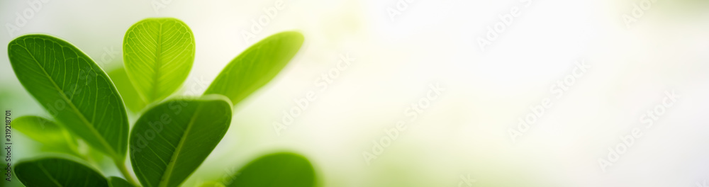 Nature of green leaf in garden at summer. Natural green leaves plants using as spring background cover page greenery environment ecology wallpaper
