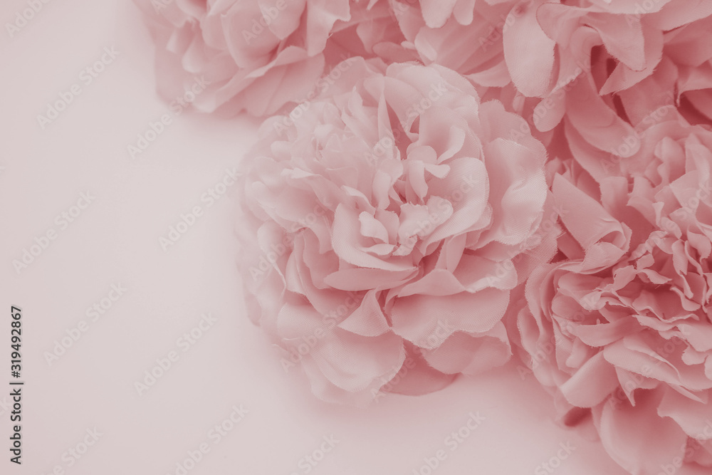 Beautiful abstract color orange red and pink flowers on white background and red flower frame and pink leaves texture, light pink background, colorful red banner happy valentine