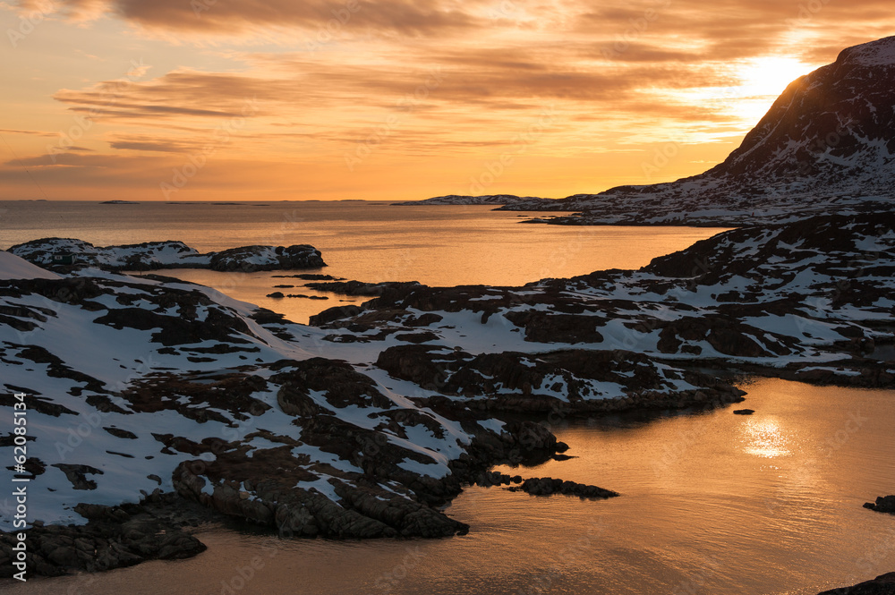 Beetroot carpaccio with walnuts, goat cheese, lettuce and spinach. Dressed with sauce. On a dark background.