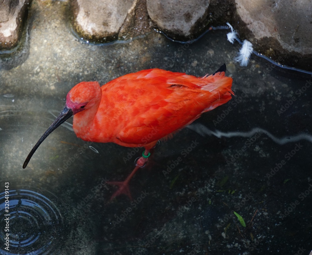 Eudocimus ruber bird native to South America; It is the national bird of Trinidad and Tobago and prominently featured on its coat of arms.