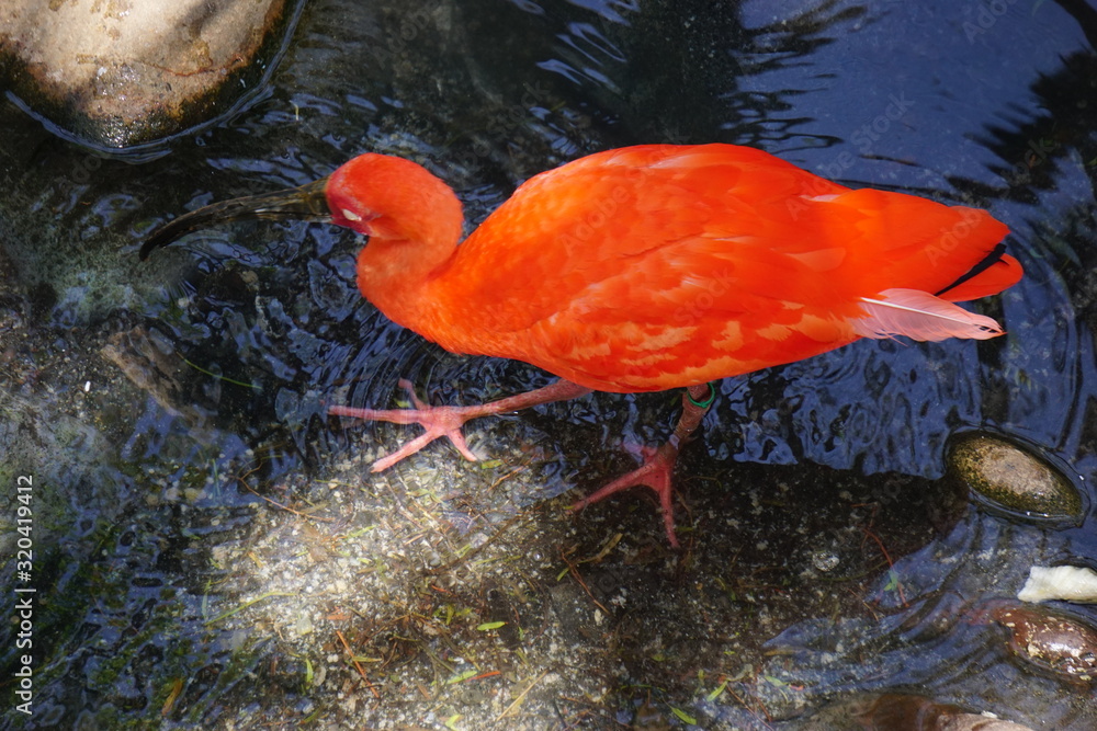 Eudocimus ruber bird native to South America; It is the national bird of Trinidad and Tobago and prominently featured on its coat of arms.