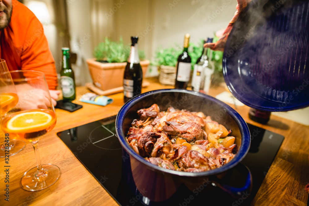 Traditionelles dalmatinisches Lamm Peka und Getränke