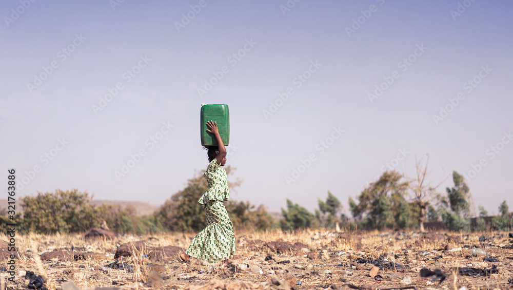 Candid photo of African Girl Saving fresh Water in an arid zone