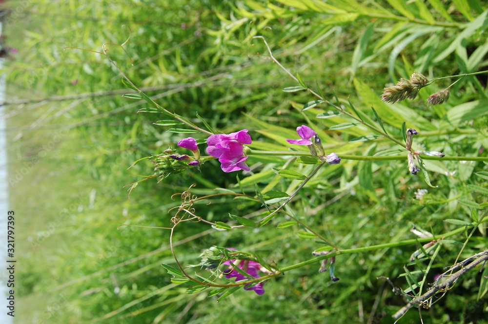 Lathyrus sylvestris, flat pea, narrow-leaved everlasting-pea pink flowers in meadow