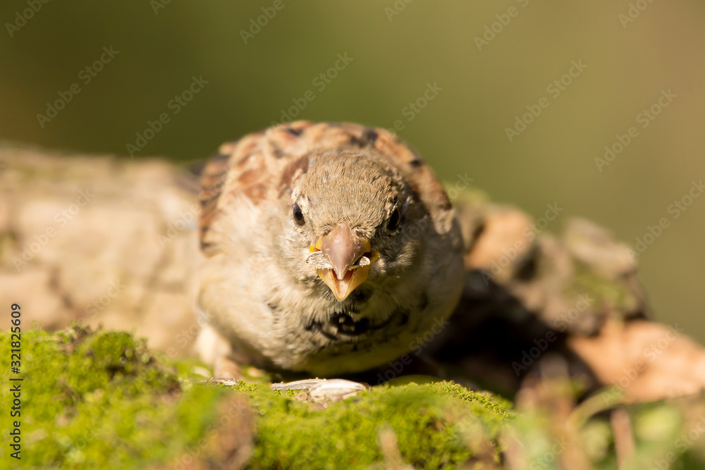 House sparrow (Passer domesticus) or common european sparrow, a bird of the sparrow family Passeridae, found in most parts of the world, cosmopolitan sparrow species