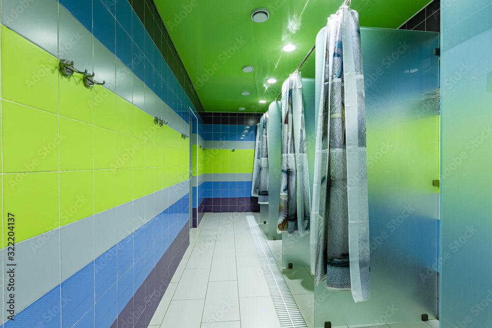 Showers empty on light background. Bathroom interior. Interior design wall.