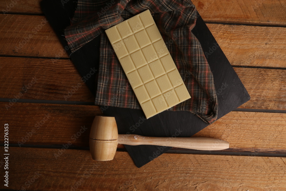 white chocolate tablet in color background