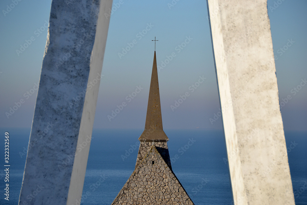 Chapelle Notre Dame de la Garde à Etretat et monument Nungesser et Coli, Normandie, France