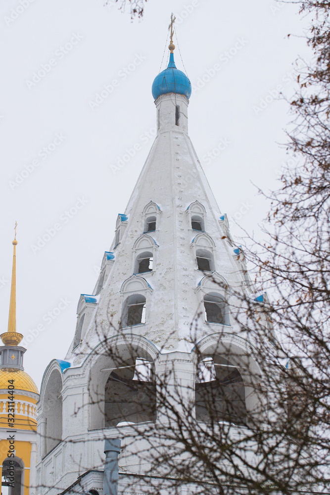 Close Up Of Bell Tower In Winter In Kolomna, Moscow Region, Russia.