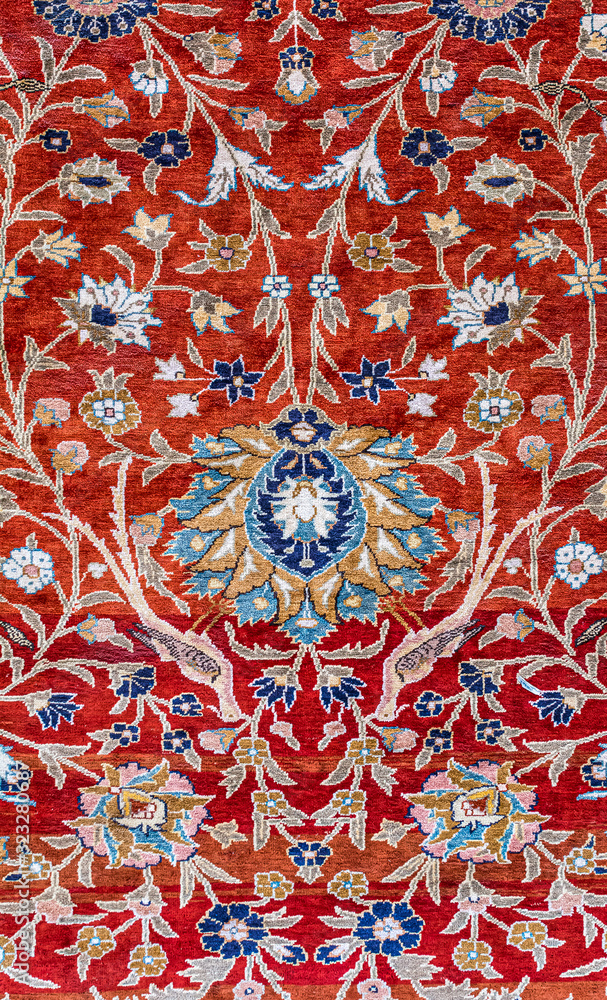 Persian carpet details. Floral motifs of the clasical Persian carpet showing floral patterns as a background