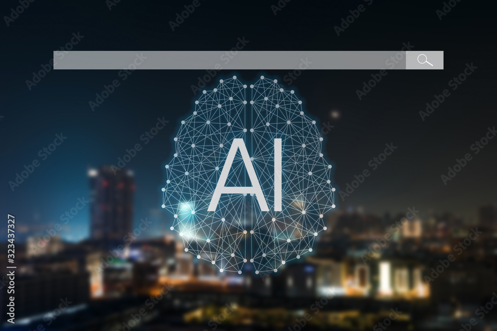 Concept information smart search. World community and Neural network. New minimal creative concept. Searching information data on internet networking concept. AI(Artificial Intelligence)