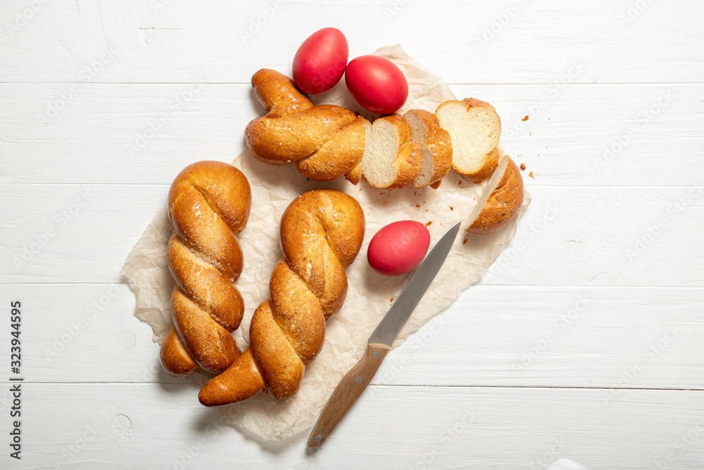Greek easter buns. Greek Easter. Italian Easter. Traditional easter bread. Easter eggs