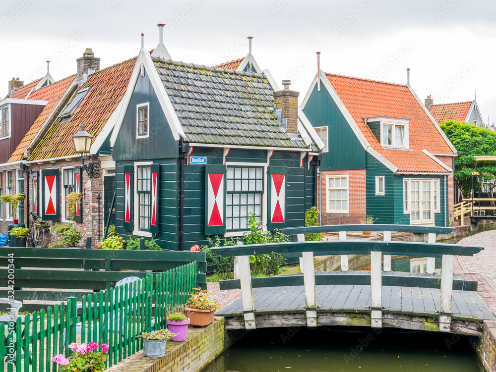 Bridge over canal to Doolhof in Volendam, Noord-Holland, Netherlands