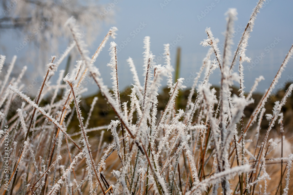 Hoar frost on plants and leaves