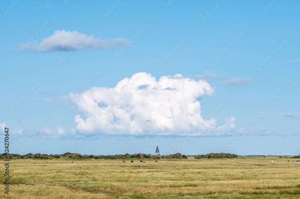 Kobbeduin beacon and marshes of Oosterkwelder on Frisian island Schiermonnikoog, Netherlands