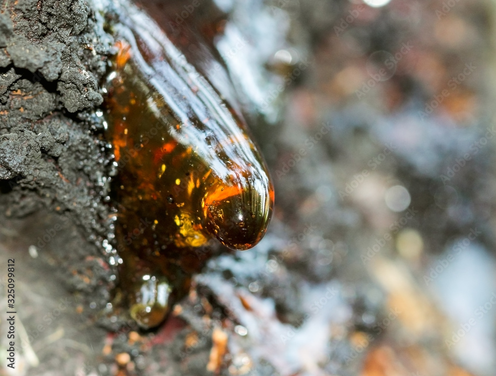 Beautiful drop of resin on apricot bark