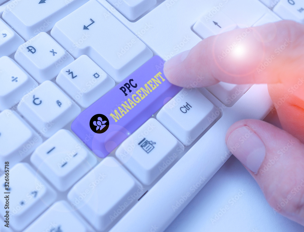 Conceptual hand writing showing Ppc Management. Concept meaning process of overseeing and analysisaging a company s is PPC ad spend