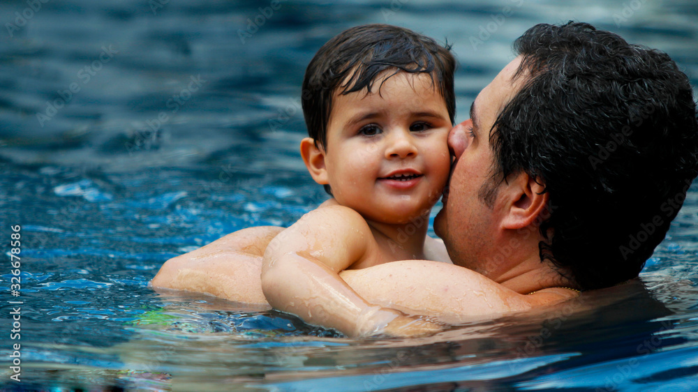 pai brincando com seu filho piscina