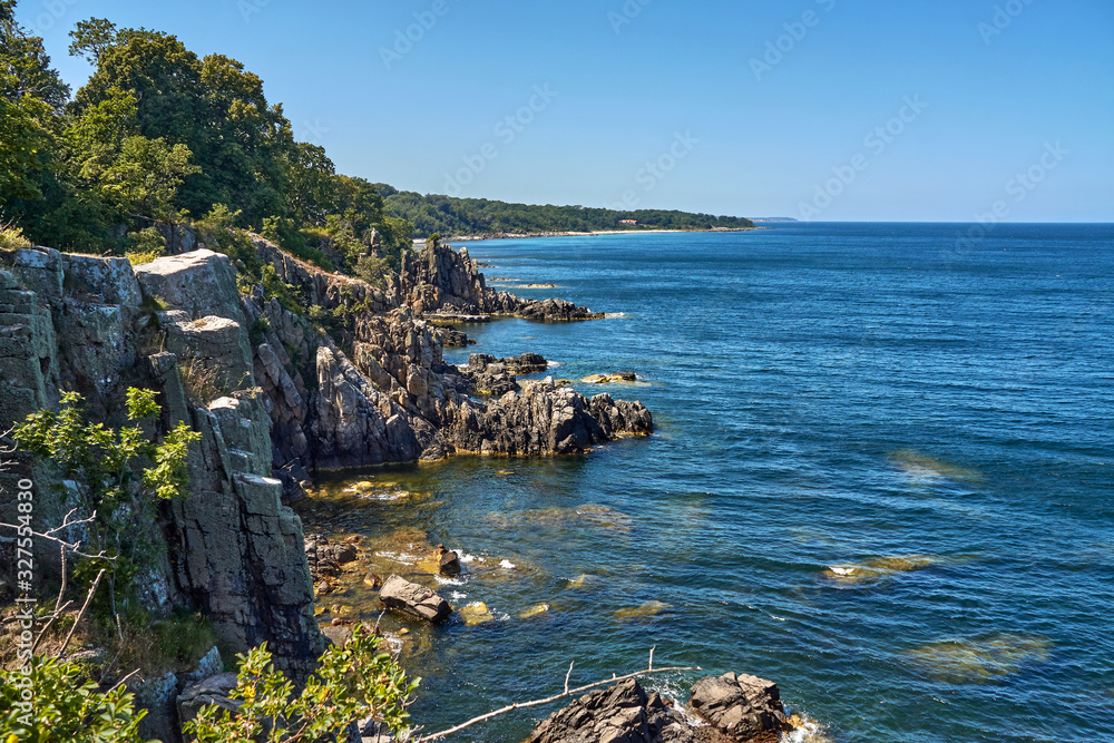Helligdomsklipperne (Sanctuary Rocks) rocky coastline in the vicinity of Gudhjem Bornholm island, Denmark.