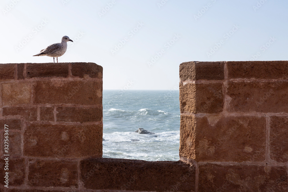 Möwe auf der Befestigungsmauer der Skala de la Kasbah von Essaouira, Marokko