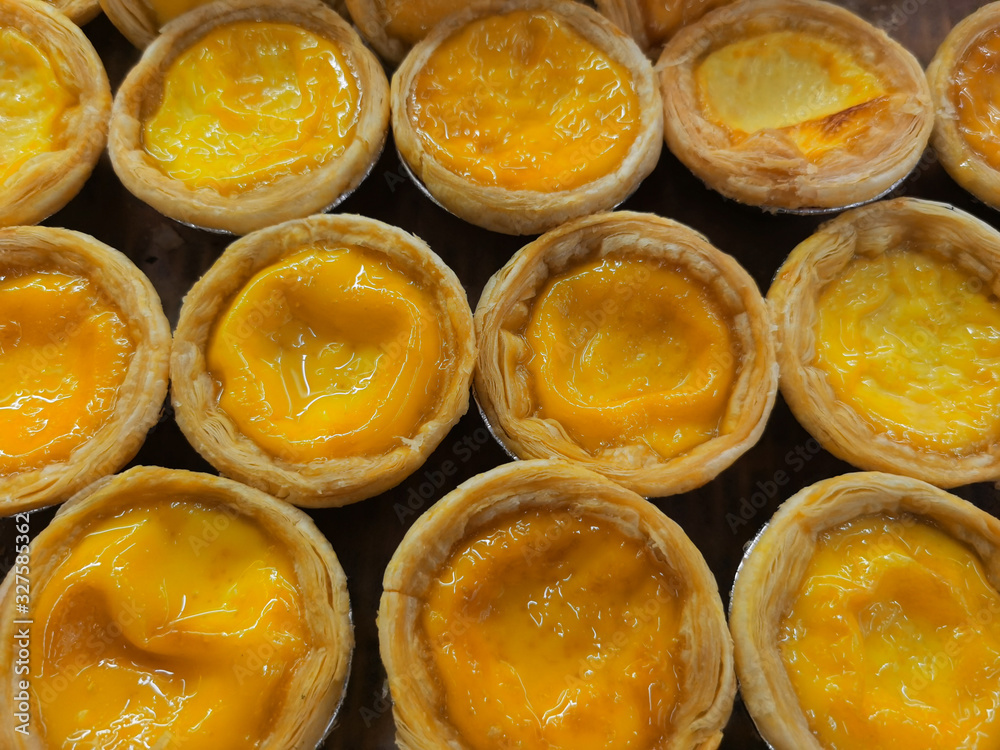 A lot of donuts cake bun cookies and sweet dessert and egg tart in food course and supermarket