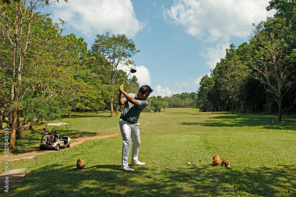Golfer playing golf in beautiful golf course in the evening golf course