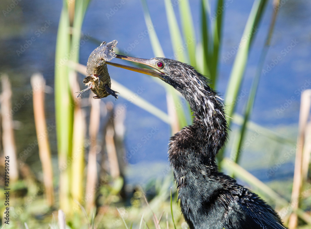 Anhinga spearing a fish for dinner at the Lake Apopka Wildlife Drive in Florida.