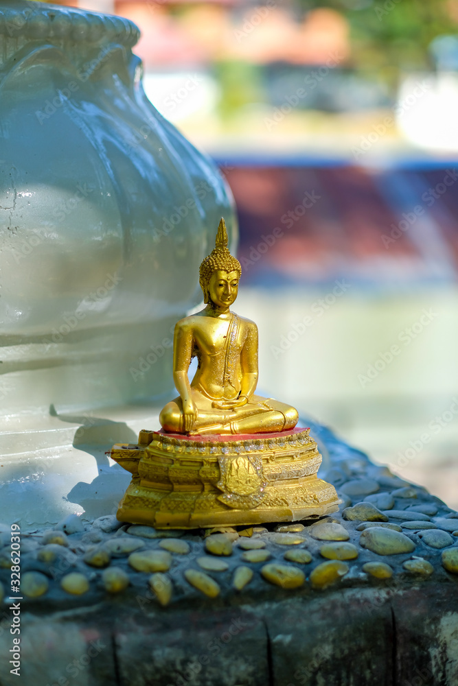 Closeup golden Buddha statue in temple Phra chao yai lue chai
